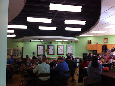 Today we celebrated another great Thanksgiving meal prepared by Mrs. Anne & Mrs. Shayla and we had a wonderful turnout! We had smoked turkey, cornbread dressing with brown gravy, buttered corn, green beans, sweet potato casserole with marshmallows, rolls and four kinds of yummy dessert. We are so blessed for our children, families and hard working staff and it brings us great joy to see these families get together to enjoy a home cooked meal. The children had a great time seeing their families for lunch and their favorite part was the chocolate cake & icing! Thanks again for sharing your time and children with us. Happy Thanksgiving to you from the Academy of Harpeth Village.
